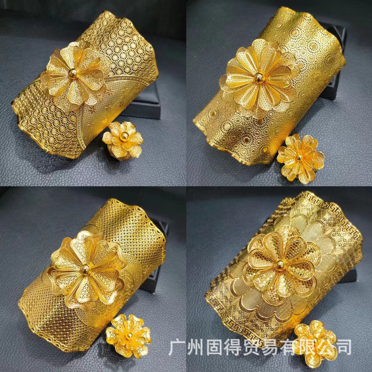 24K Gold Plated Flower Bracelet Ring Set Dubai India Nigeria Bride Hollow Sand Gold Bracelet Wholesale