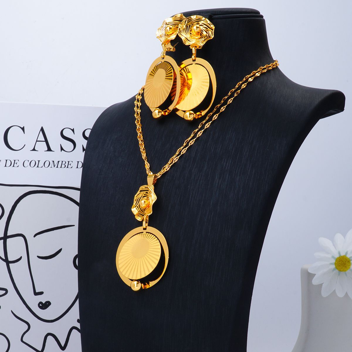 Cross-Border Dubai Style Exaggerated Geometric Sun Heart-Shaped Pendant Necklace Trendy Necklace Earrings Set