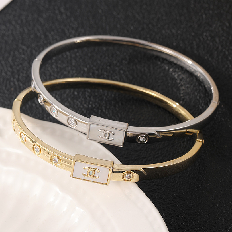 Natural Shell Zircon Double C Letter Bracelet Aaa Zircon Inlaid Middle East Dubai Hot-Selling Jewelry High-End Jewelry
