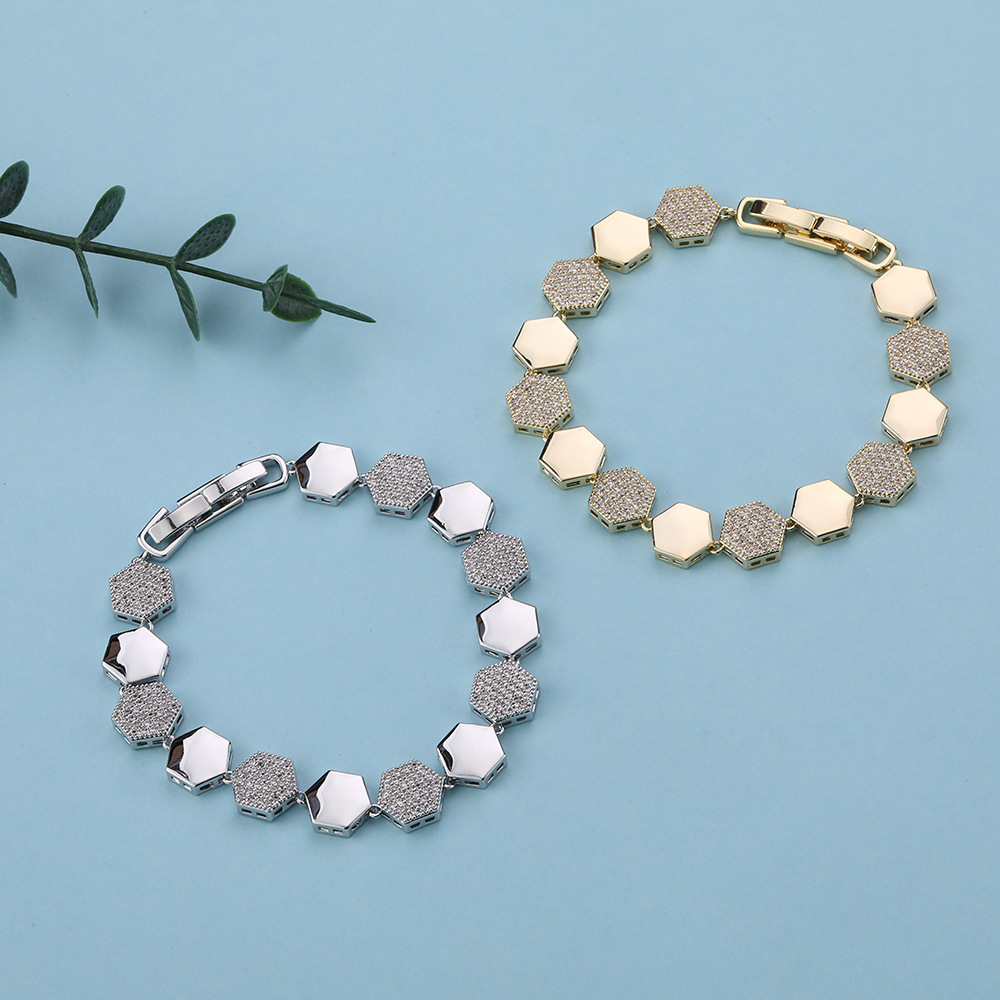 European and American Hip-Hop Hexagonal Zircon Bracelet Large Gold Chain Miami Cuban Chain Hiphop Rap Accessories Bracelet for Men