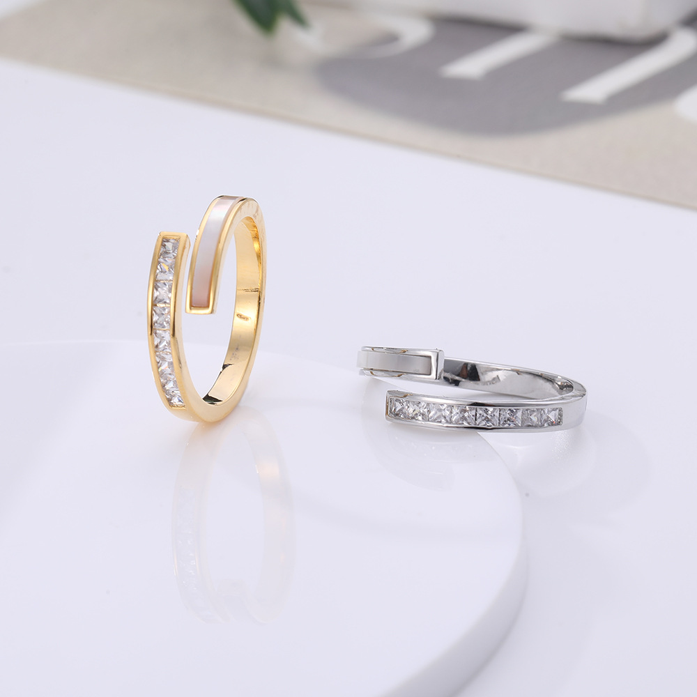 Internet Celebrity Exquisite Super Flash Zircon Ring Women's Color-free Natural Fritillaria Food Finger Ring Light Luxury Advanced Sense Open Ring