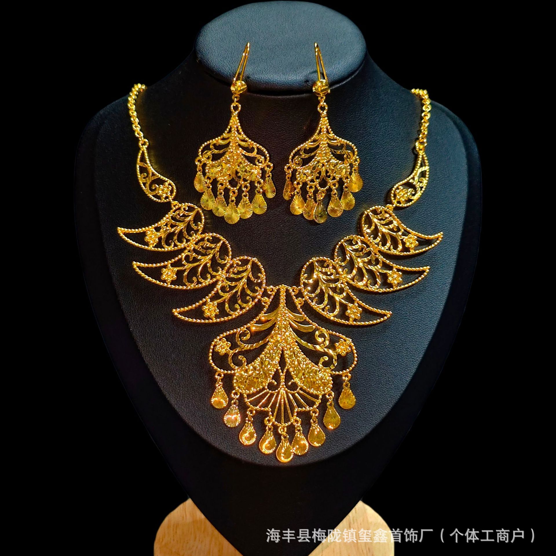 Dubai Middle Eastern Gold-Plated Copper Floral Hollow Necklace Set Women's Jewelry Factory Direct Sale Accessories Floral Earrings