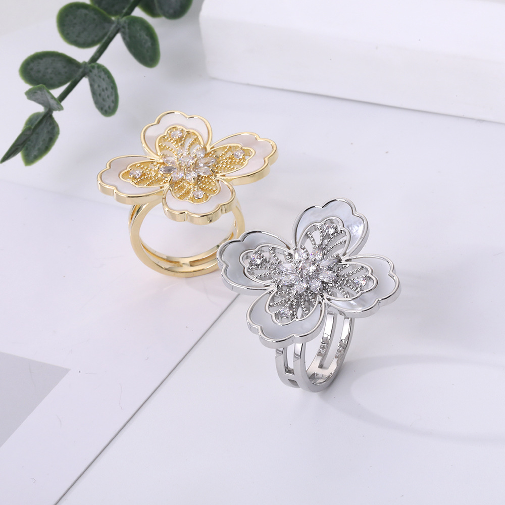 European and American Cross-Border Heavy-Duty Floral Ring for Women, Natural Mother-Of-Pearl Hollow Design, Fashionable Light Luxury Yiwu Accessory