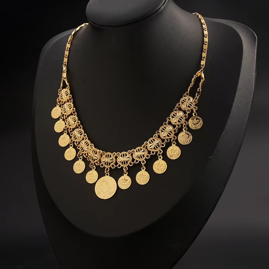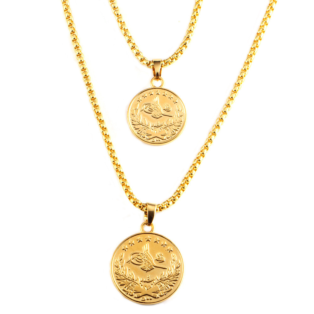 2025 Original Design Dubai Middle Eastern Gold Coin Necklace Double Layer Cross-Border Necklace