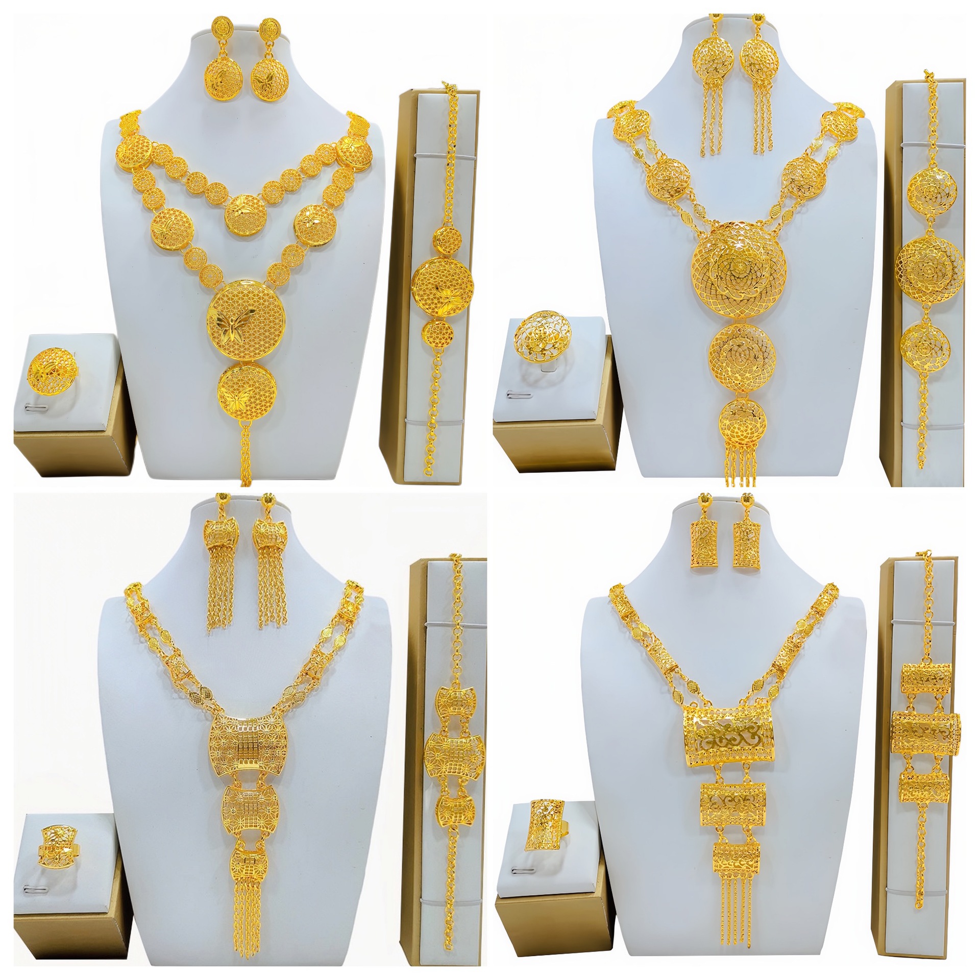 Gold Plated Dubai Jewelry Set Middle East Women's Jewelry Necklace Bracelet Earrings Ring European and American Women Cross Border Bride
