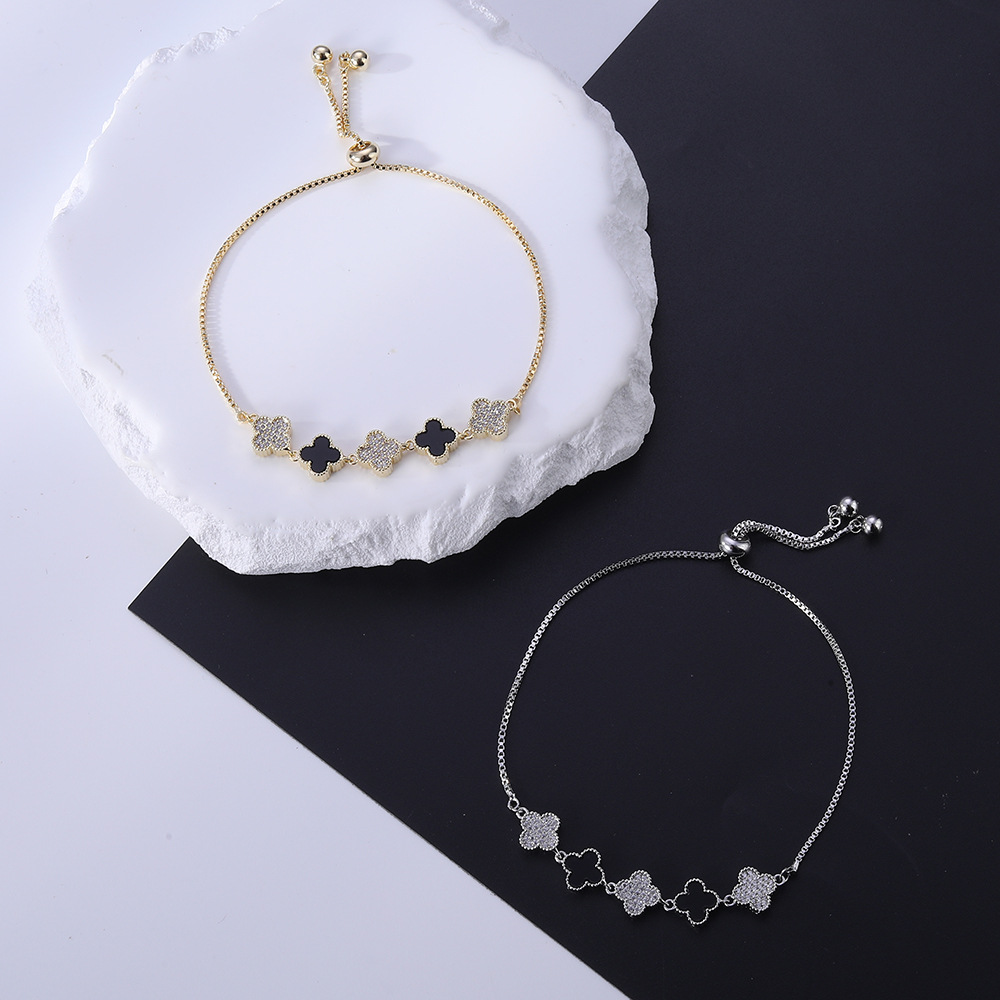 New Flower Four-Leaf Clover Bracelet Micro-Encrusted Zircon Elegant Bracelet Women's Niche Design High-End Petal Hand Jewelry