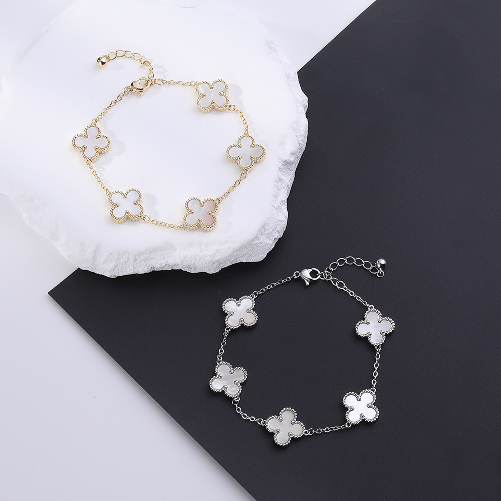 Cross-Border Popular Five-Flower Four-Leaf Clover Bracelet for Women, High-End Natural Shell Inlaid Bracelet, Double-Sided Textured Bracelet