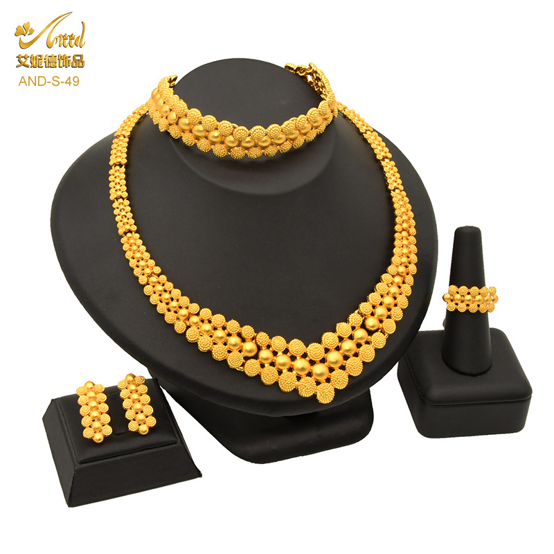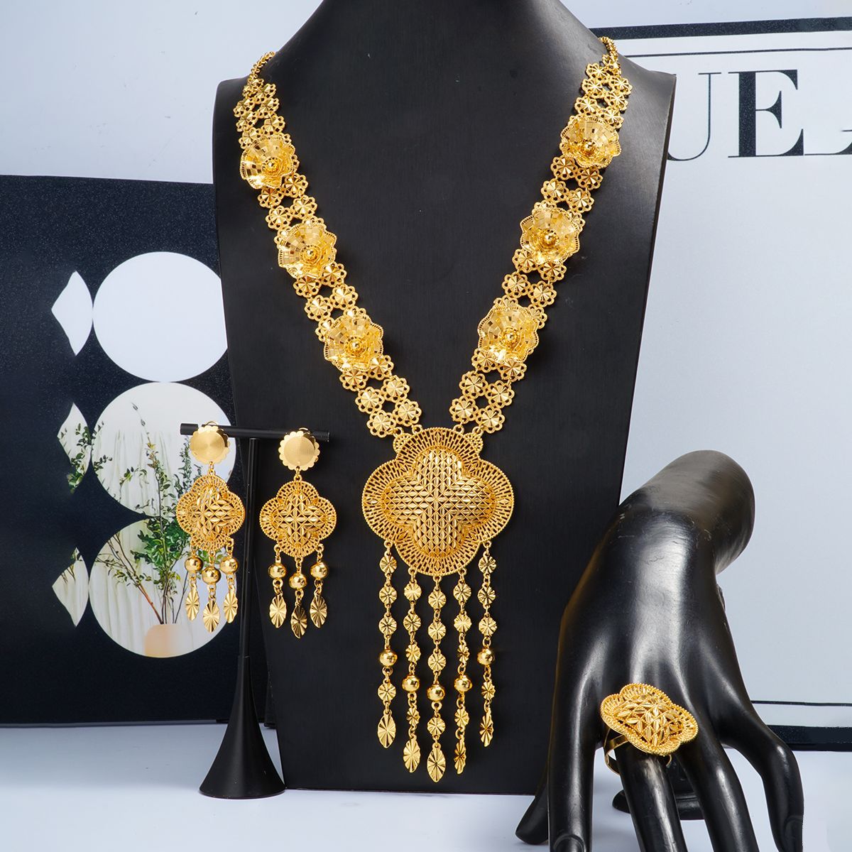 Cross-Border Dropshipping Dubai Middle East Copper Gold-Plated Jewelry Set Women's Necklace Earrings Bridal Factory Direct Sales