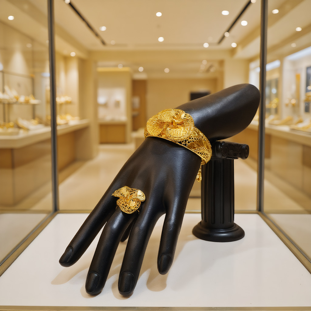 Flower Bracelet Ring Jewelry Set 2-Piece Set 24K Gold Middle East Dubai Bridal Wedding Jewelry