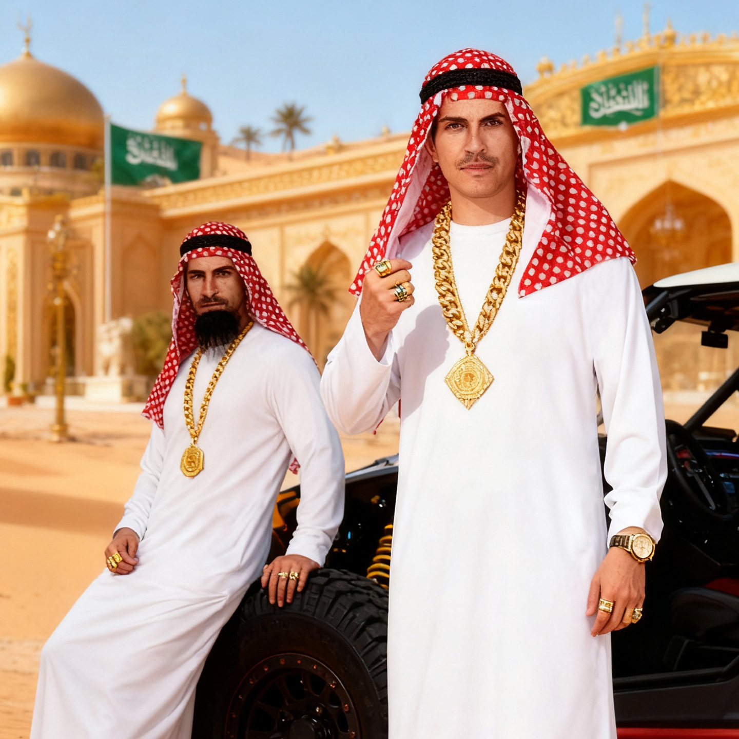Arab Costume Dubai Middle East Tuhao Robe Birthday Party Funny Internet Celebrant TikTok Super Thick Chain Props