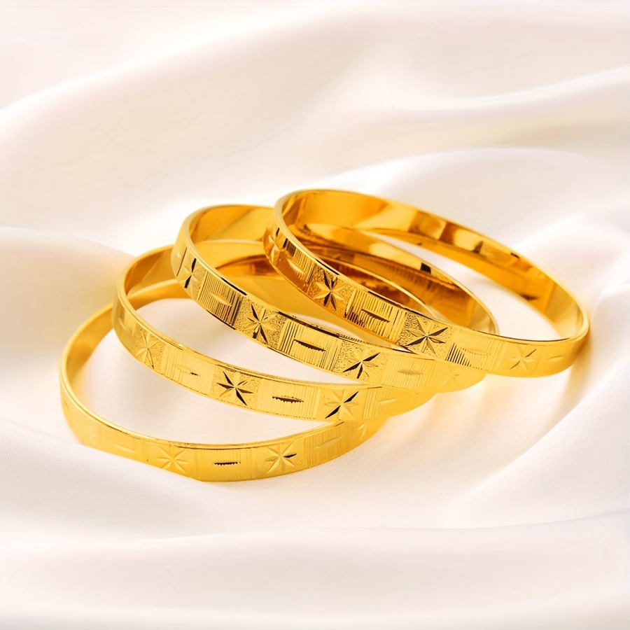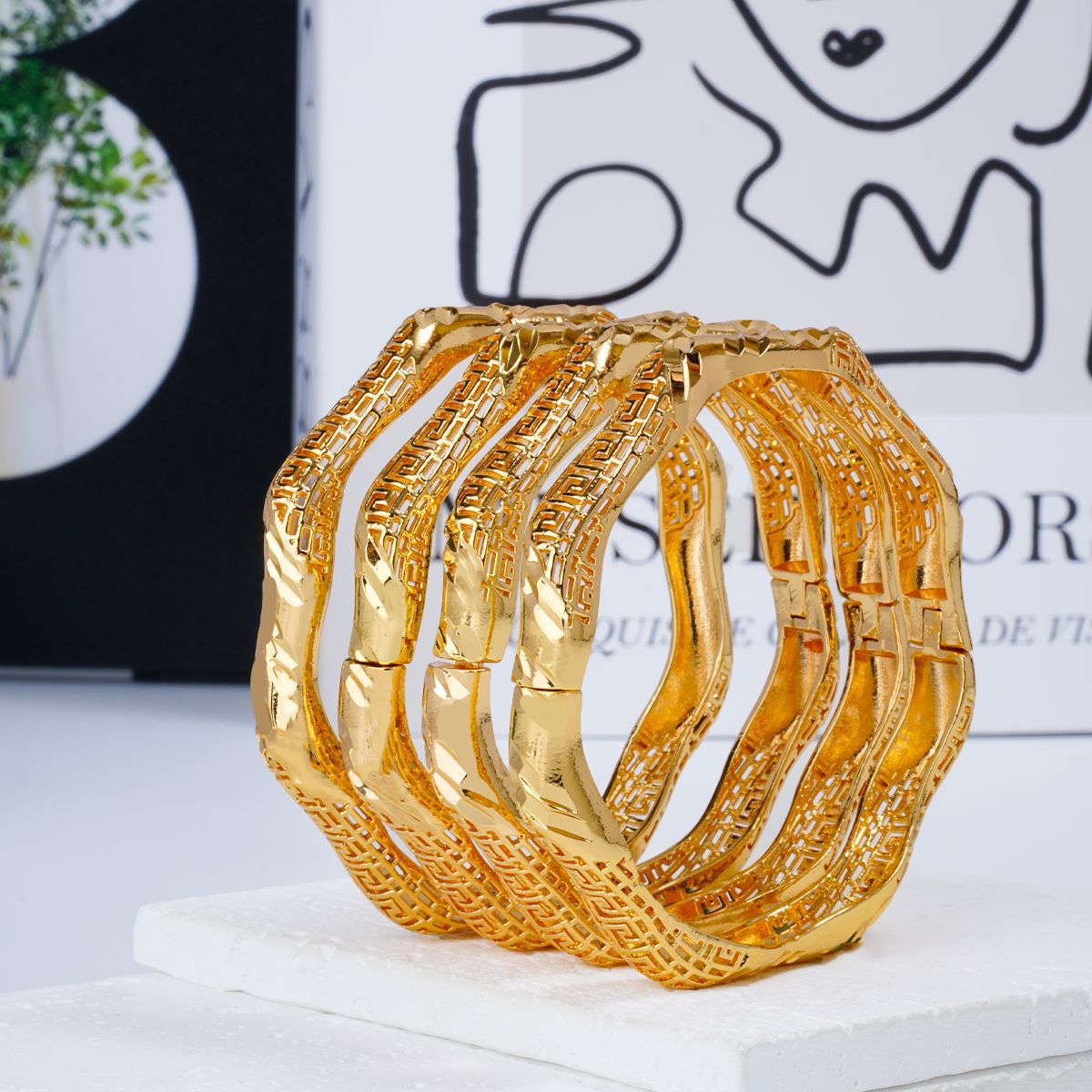 Middle East Cross-Border 4 Pieces of 24K Gold-Plated Openable Bamboo Bracelets Dubai European and American Style Bridal Wedding Jewelry