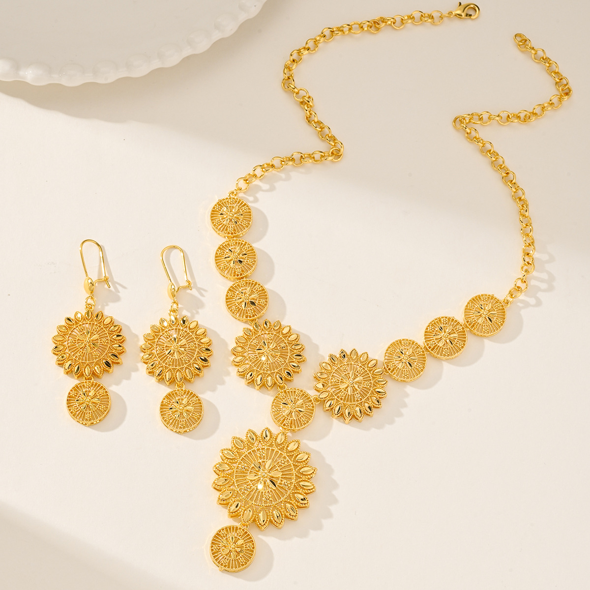 Cross-Border Middle East 24K Gold-Plated Flower Cut Out Necklace Earrings Set Dubai European and American Bridal Wedding Jewelry