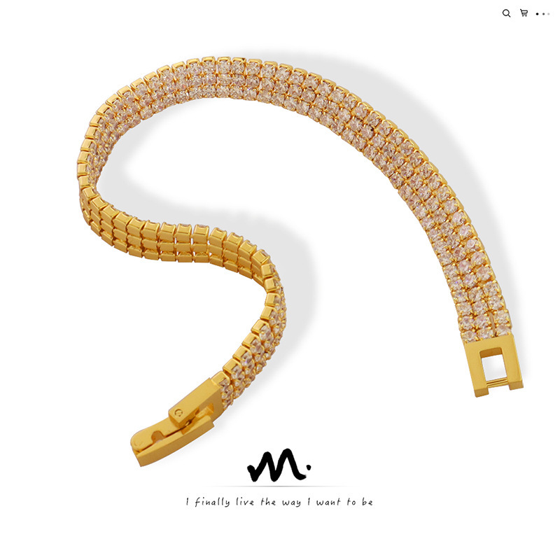 Cross-Border European and American New Fashion Bracelet, Simple Design, Versatile Temperament, Micro-Encrusted Zircon, Dubai Copper Gold-Plated Bracelet for Women