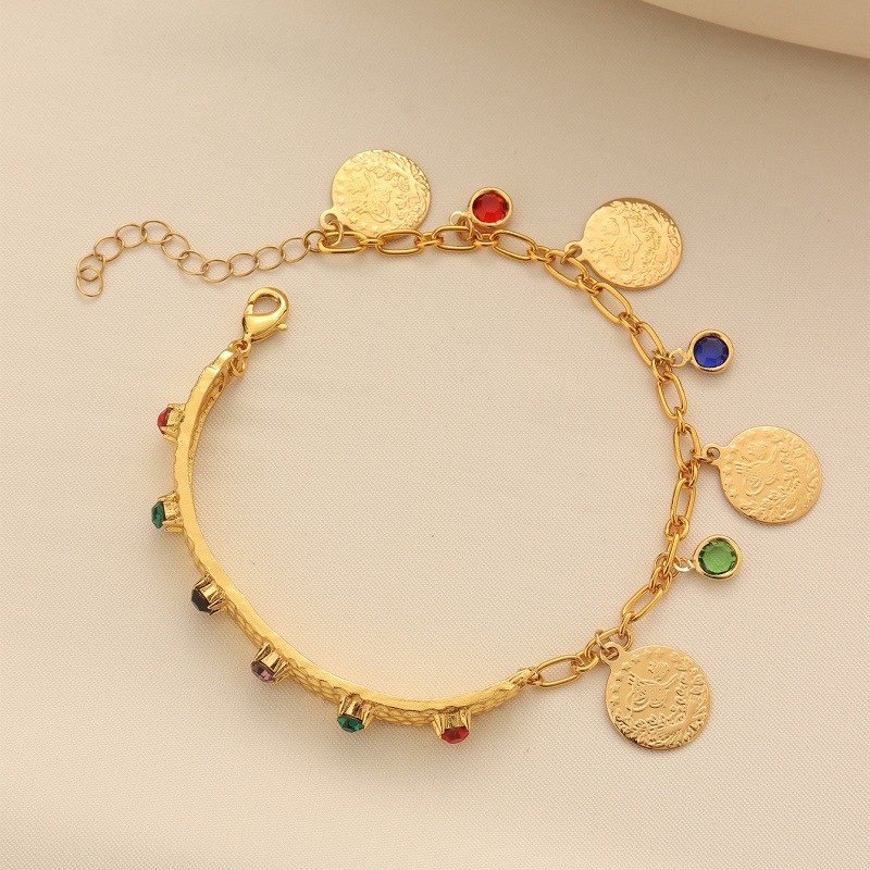 Cross-Border Gold-Plated Coin Inlaid Zircon Bracelet with Colorful Beads and Tassels, Dubai Light Luxury High-End Exquisite Bracelet