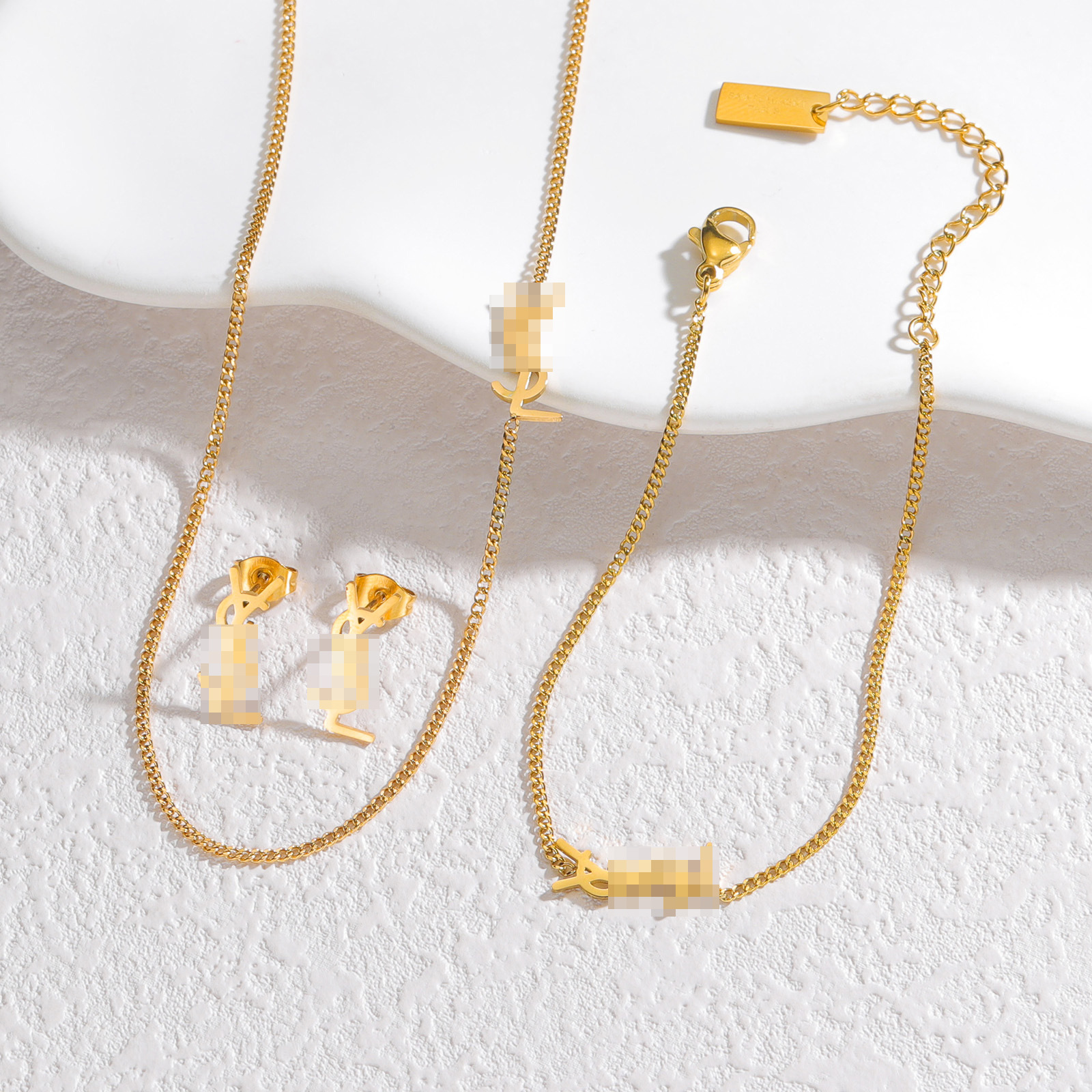 Dongguan Titanium Steel Jewelry Shengjia Y Letter All-match High-end Cross-border Earrings Bracelet Necklace Women's suit
