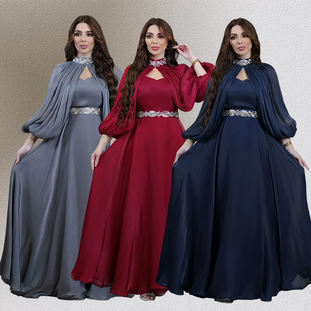 2025 Autumn and Winter New Export Women's Clothing Middle East Dubai Versatile Simple Fashion Elegant Waist Pendant Dress for Women