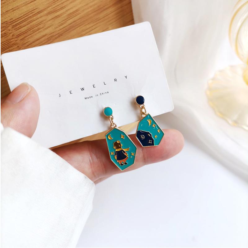 S925 silver needle creative irregular geometric stud earrings personality contrast color little boy earrings Internet celebrity new ear clip 924