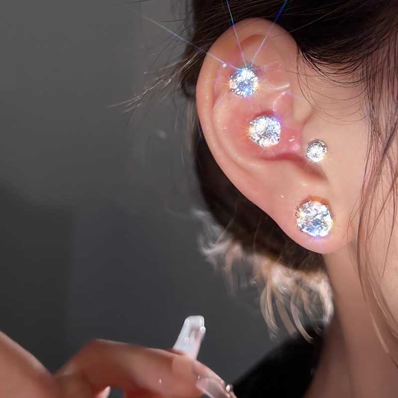 Cross-Border Fashion 925 Silver Needle Earrings for Men and Women, Classic Earrings, Round Zircon Non-Pierced Earrings, New Earrings