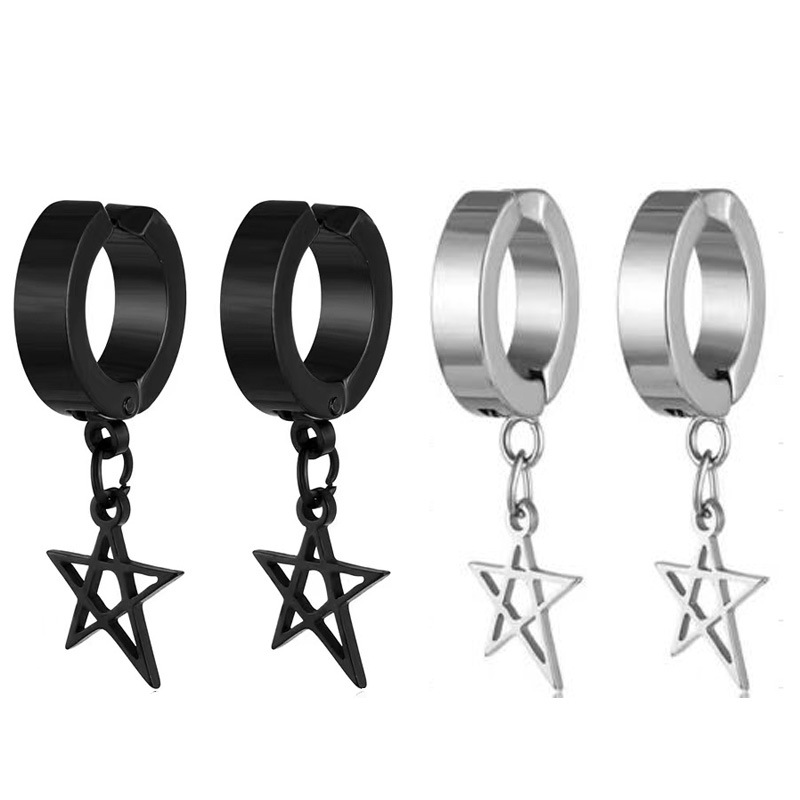Korean Style Fashionable Round Men's Pierced Earrings Cross Five-Pointed Star Pendant Geometric Stainless Steel Earrings Earrings