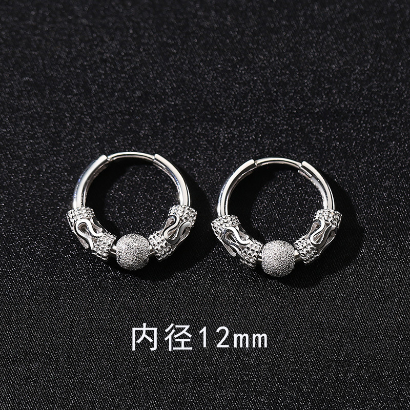 Silver-plated ear jewelry men's trendy earrings trend personality men's single simple retro circle ear buckle a generation of hair