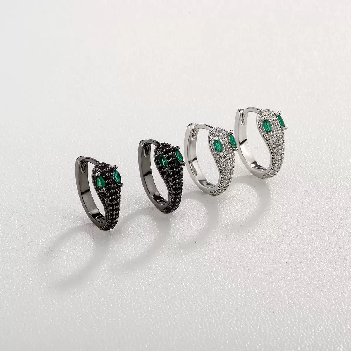 Cross-Border Amazon Style Green Diamond Snake Earrings for Men, Trendy Street Hip-Hop Snake Studs Wholesale, Trendy Snake Elements