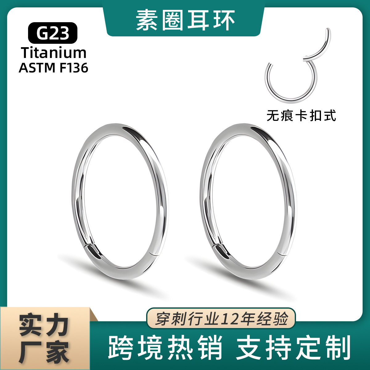 Medical Titanium Alloy Men's and Women's Plain Hoop Seamless Earrings Earrings for Pierced Ears High-End Hypoallergenic