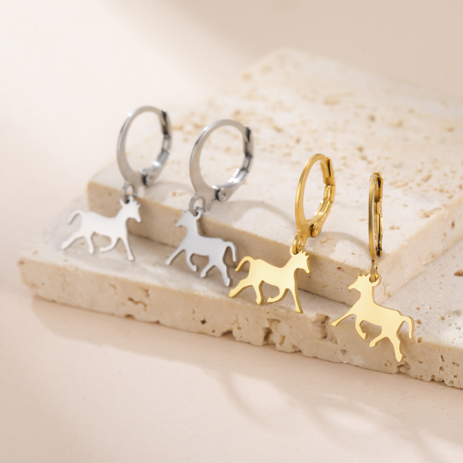 Cross-Border New Fashion Accessible Luxury Simple Running Horse Pendant Design Men's and Women's 304 Stainless Steel Earrings Earrings