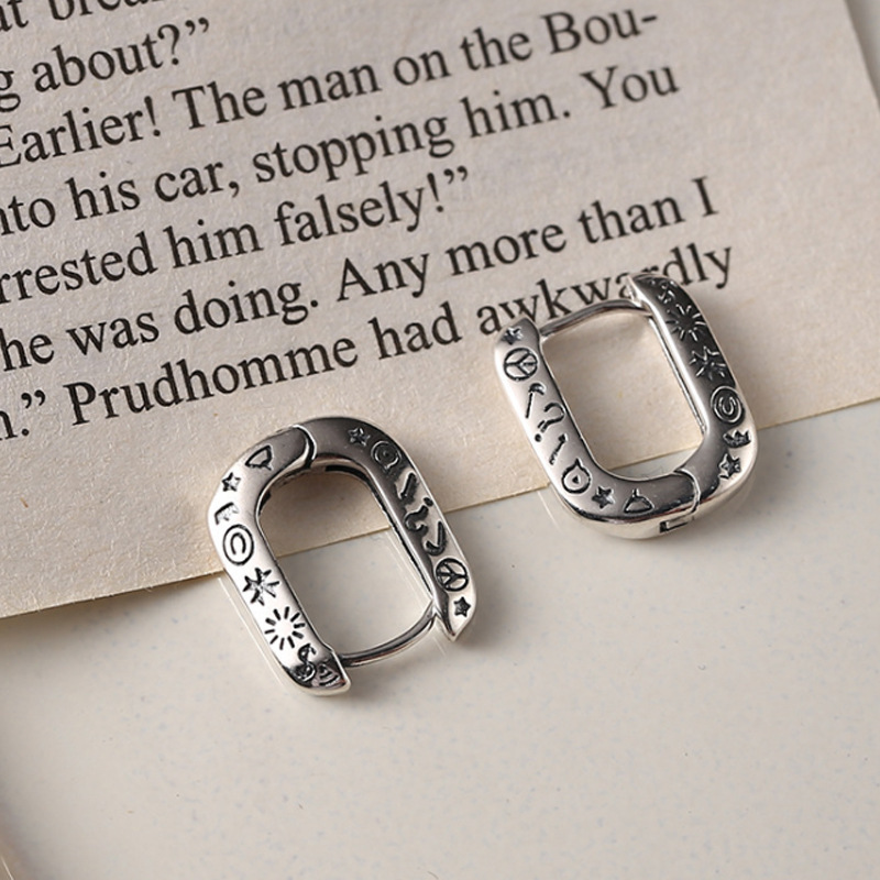 Printed Graffiti U-Shaped Earrings Ins Retro Oiling Process Men's and Women's Personalized Earrings