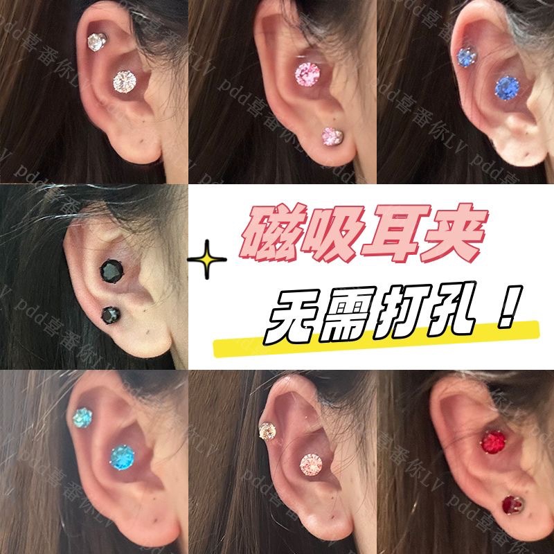 Colorful Zircon Magnetic Ear Clip Women's Super Flash Exquisite All-match Ear Clip 2024 New Simple Earrings for Men