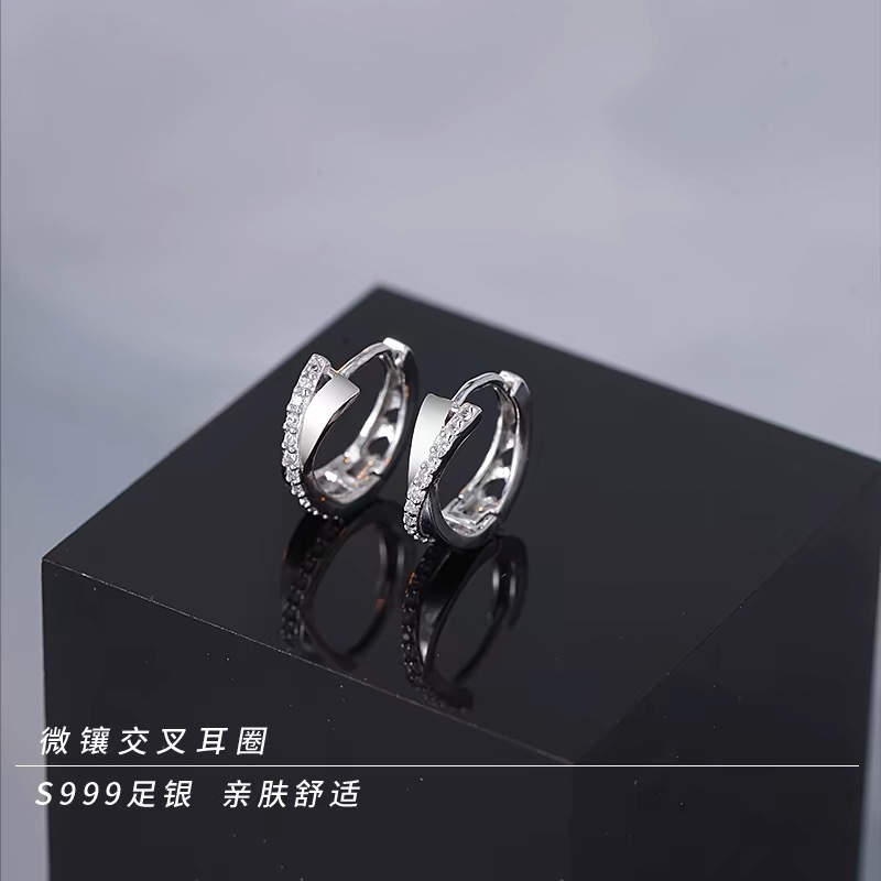 Chen 17 S999 Sterling Silver Earrings Men's Advanced Sense Ear Hole Ear Bone Ring Ear Buckle Single Ear Ring Earrings