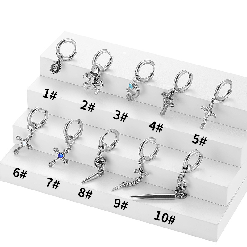 Japanese and Korean Hip Hop Punk Trendy Men's Stainless Steel Chain Earrings Cross Round Black Titanium Steel Earrings Ear Buckle
