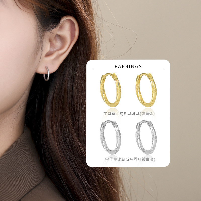 S925 Sterling Silver Mobius Ring Earrings for Men and Women Neutral Style Niche Simple Cold Style New Ear Ring Ear Buckle