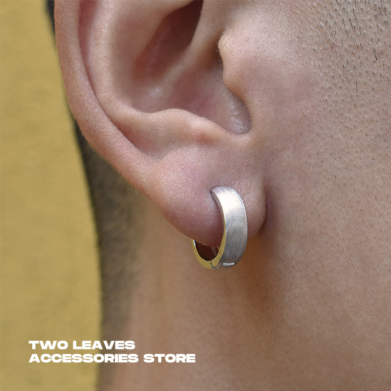 Korean Style Men's Stainless Steel Hoop Simple Earrings Without Pierced Ears, Personalized and Versatile, Fashionable Spring Ear Clip and Ear Wire Hoop