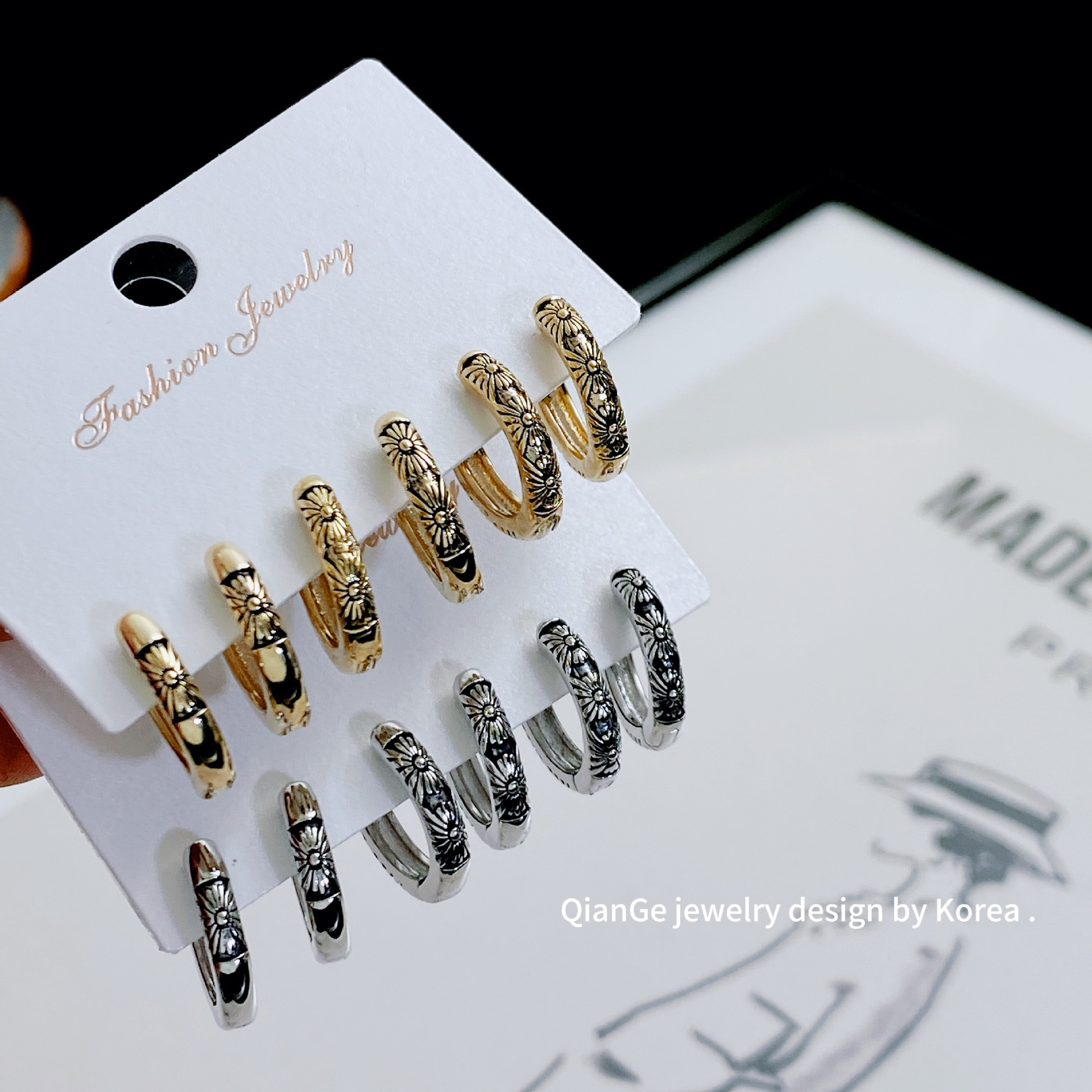 Kana Mina Vintage Unisex Men's and Women's Three Pair Ear Buckle 2025 New Fashionable Ins Distinctive Hip-Hop Ear Ring
