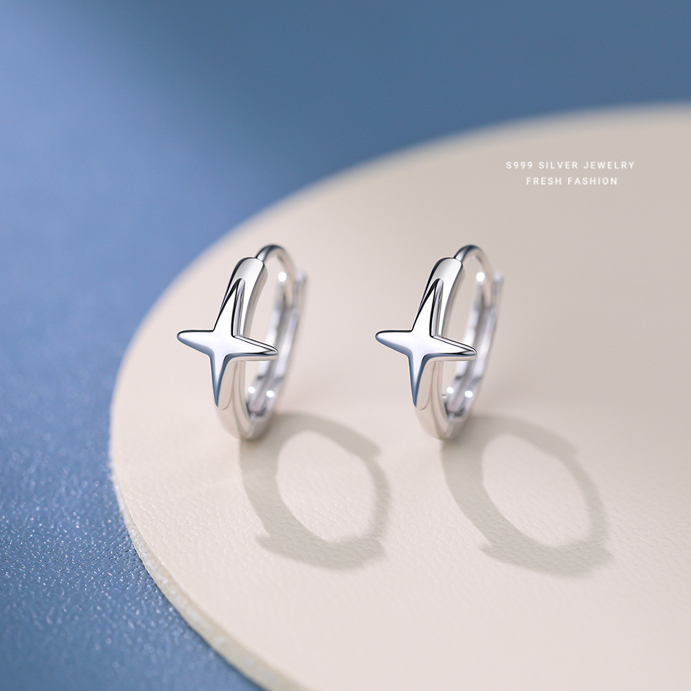 Trendy All-match Four Mans Star Earrings Women's S999 Sterling Silver Light Luxury Fashion Ear Buckle Men's Cold Style Hip Hop Ear Ring Foot Silver