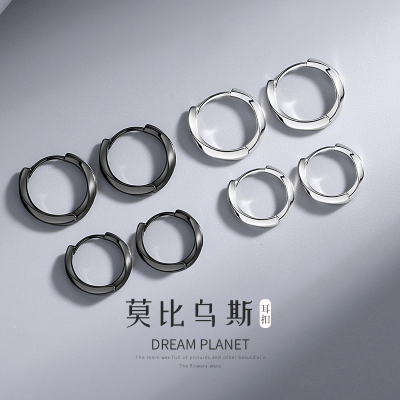 S925 Silver Earrings Men's Original Mobius Internet Celebrant Trendy Ear Buckle Distinctive All-match Earrings Women's Sterling Silver Earrings