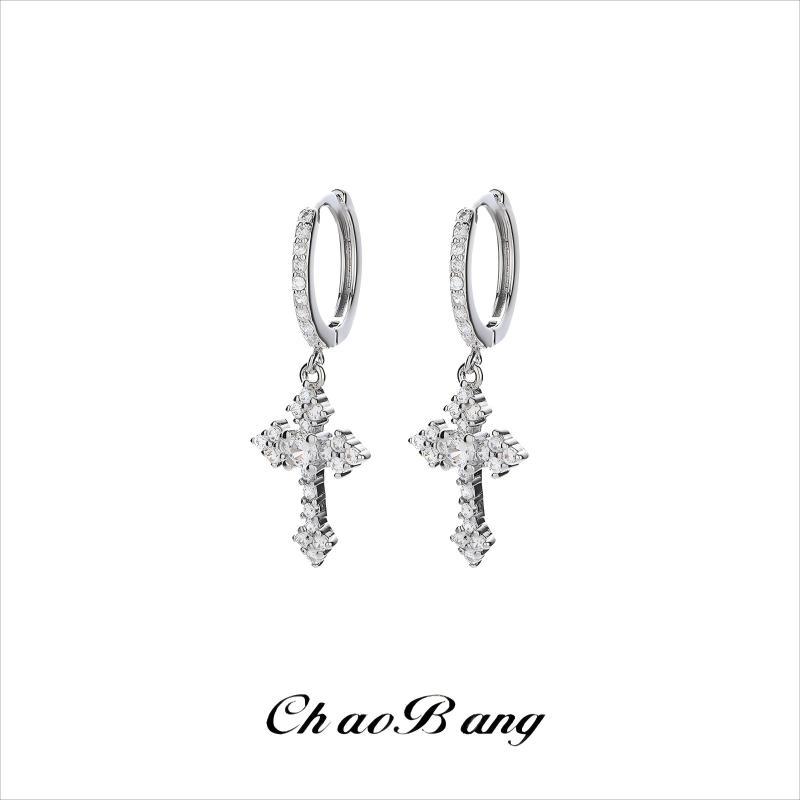 Cross Earrings for Men, Classic Earrings for Women, Inlaid with High-Quality Zircon, Fashionable European and American Earrings