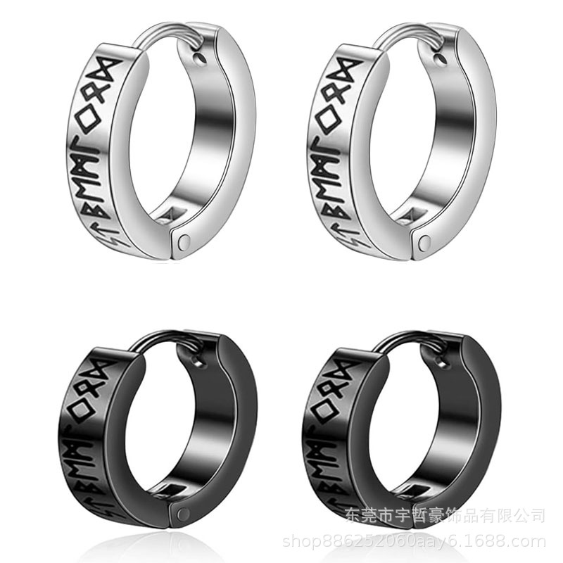 Scandinavian Viking Rune Dark Anime Character Men's Stainless Steel Vacuum Electroplating Ear Buckle Women's No Piercing Ear Clip