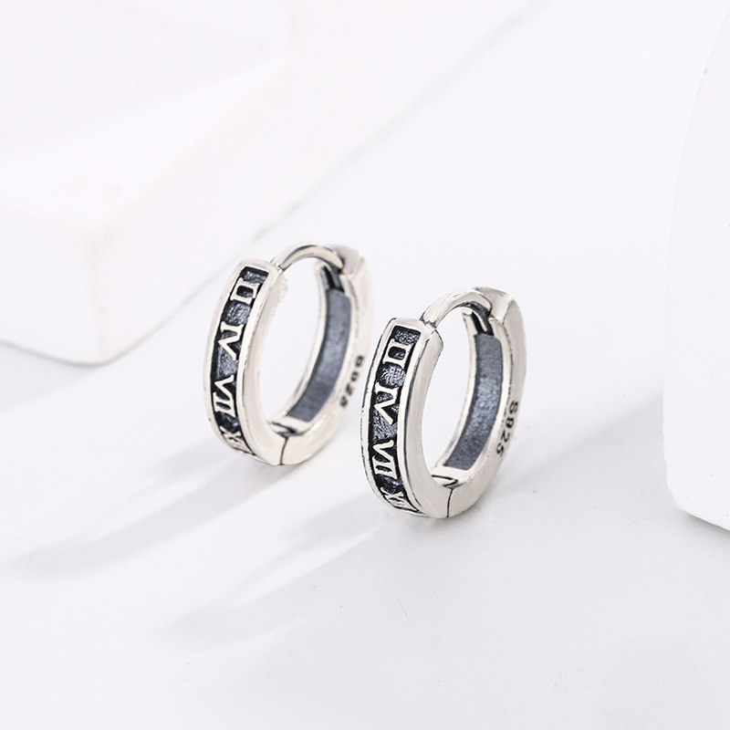 Roman Numerals Men's Earrings S925 Sterling Silver Retro Street Style Trendy Ear Buckle Elegant Yuppie Handsome All-match Ear Jewelry