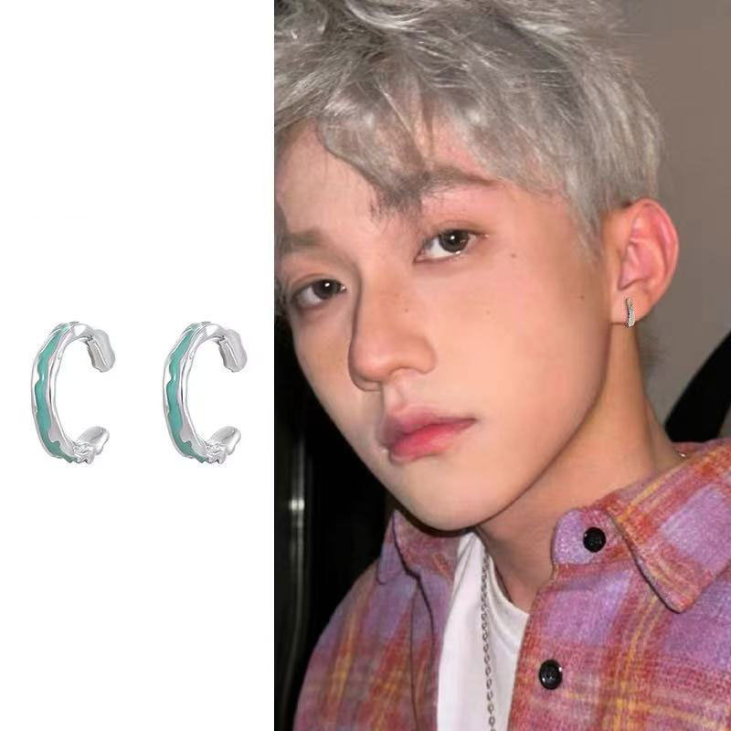 Internet celebrity same style earrings Hip Hop Street Men's earrings trendy personality earrings men's and women's titanium steel ear clip earrings
