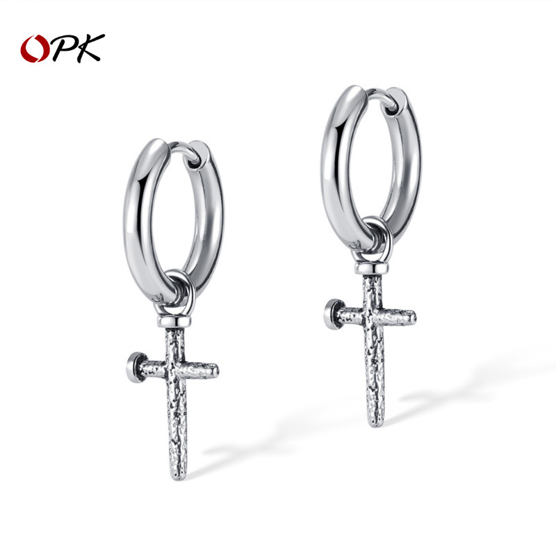 OPK jewelry AliExpress supply personality design earrings stainless steel nails cross men's earrings