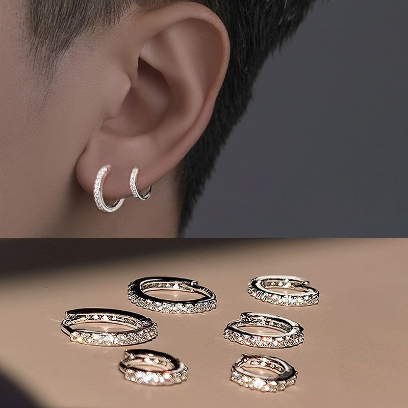 Earrings for Men, Accessible Luxury, Niche, High-End, Pierced Ears, No Need to Remove When Sleeping, Micro-Embedded Women's Ear Bone Rings, Earrings, Ear Buckles, Ear Jewelry