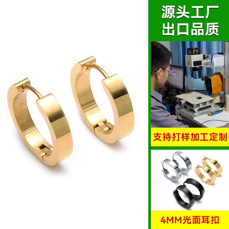 European and American Simple Earrings, Earrings for Men and Women, Personalized Trendyy 4mm Fine Surface Heavy Metal Design Ear Buckles and Ear Clips Wholesale