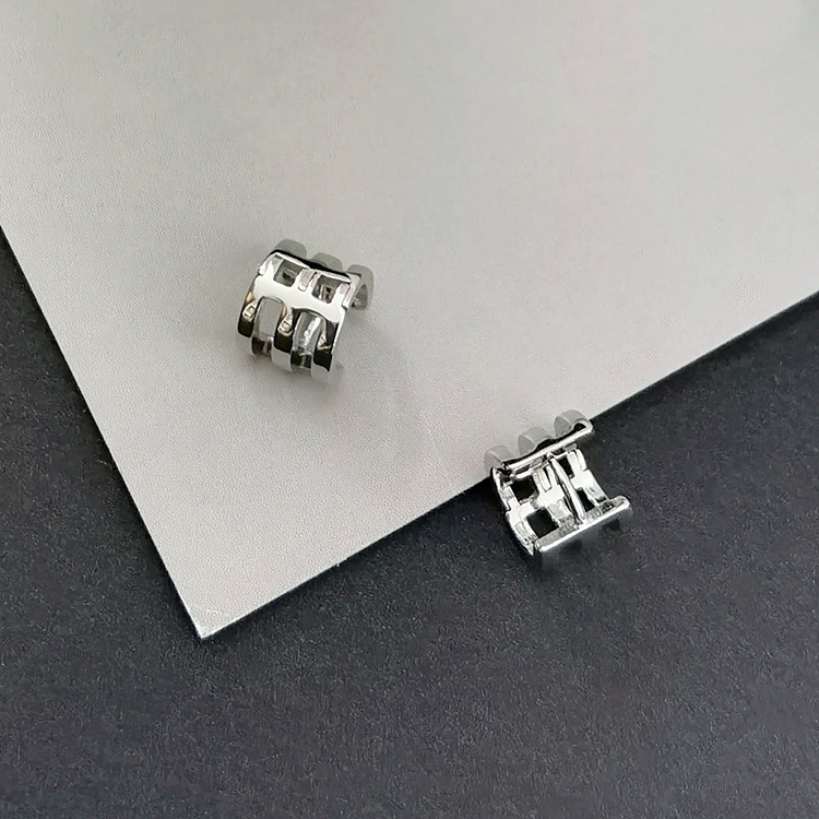 s925 Tremella Bone Buckle Simple Small Ear Buckle Women's Small Ear Accessories Men's Couple's Smoothed Wide Edge Hollow Vertical Pattern