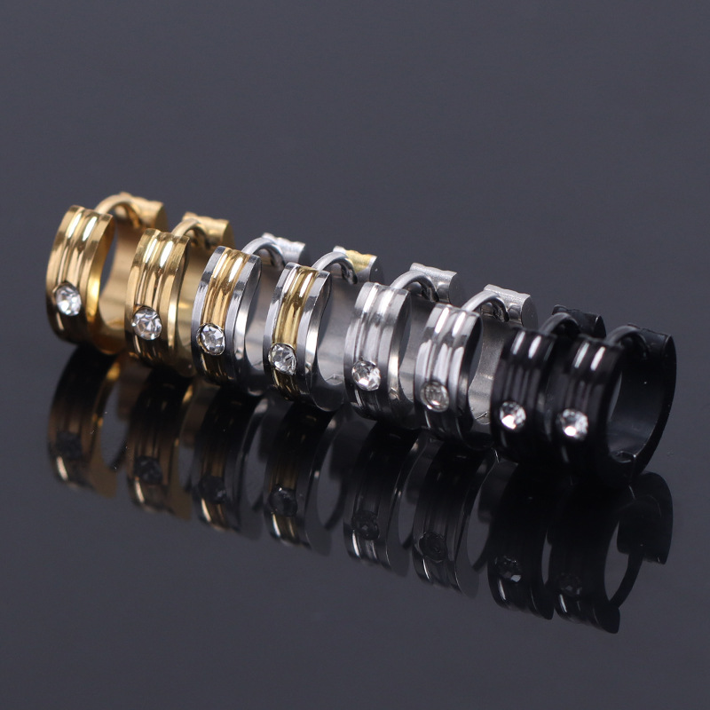 Cross-border hot-selling hipster hip-hop style diamond earrings trendy personality men's stainless steel earrings niche design jewelry