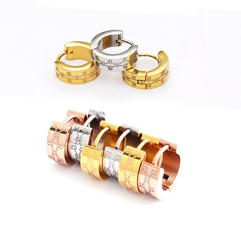European and American Hot-Selling Fashionable Titanium Steel Earrings Square Beads Men's Round Wire Earrings Stainless Steel Earrings Manufacturer Cross-Border Wholesale