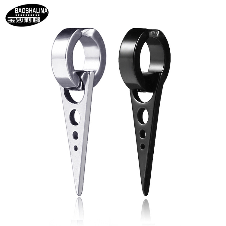 Japanese and Korean Simple and Unique Hip-Hop Punk Style Men's Titanium Steel Non-Pierced Ear Clips, No Need for Piercing, Wholesale from Manufacturer, Fashionable Earrings
