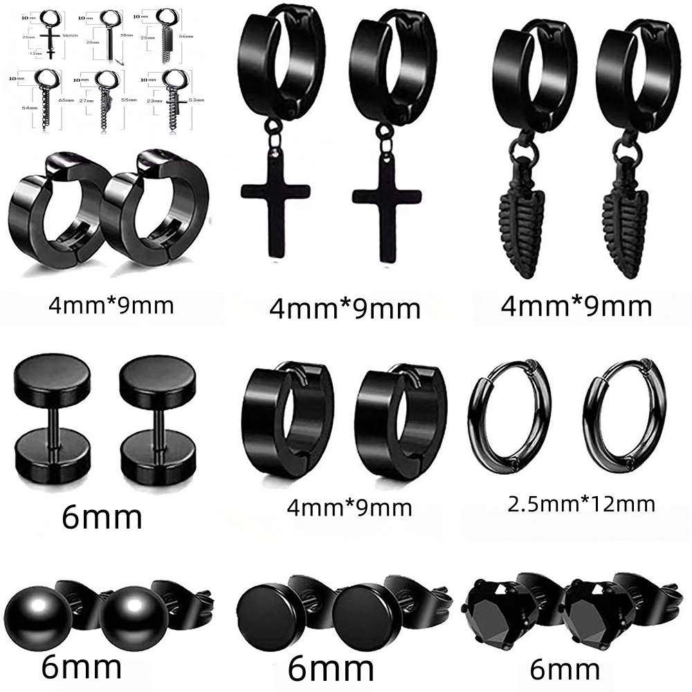 Hot Selling Multi-Piece Fashion Set Vacuum Electroplated Stainless Steel Earring Set Amazon Men's Black Earring Set
