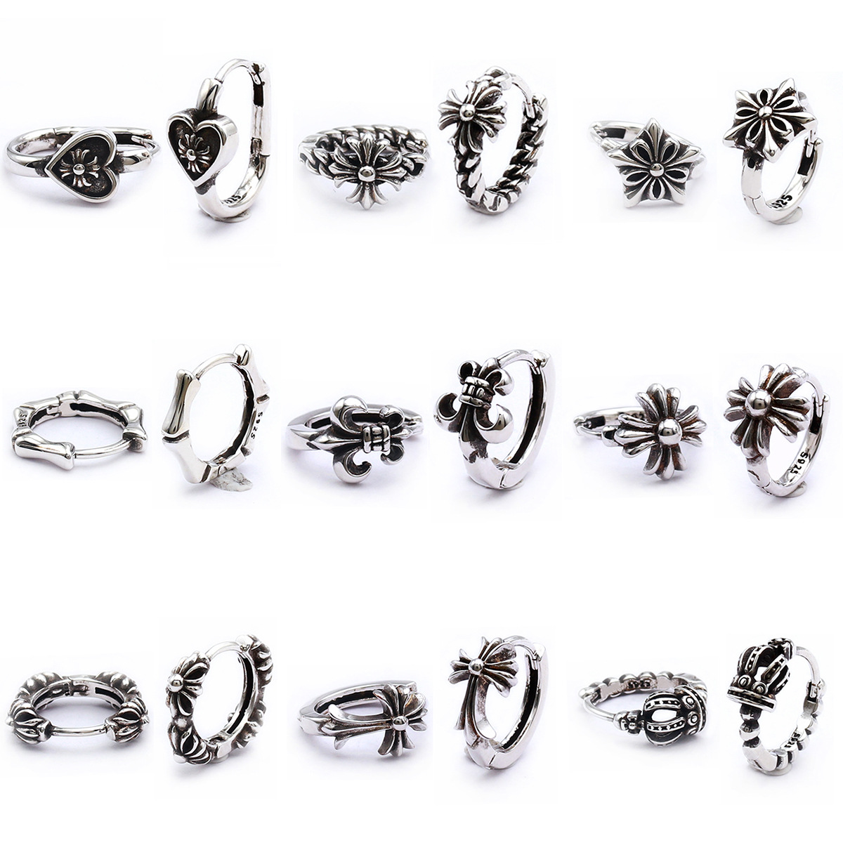 Crocodile Exquisite Cross Crown Earrings Retro Copper Silver Plated Hip Hop Men's Thai Silver Women's Hoop Earrings Minimalist Style