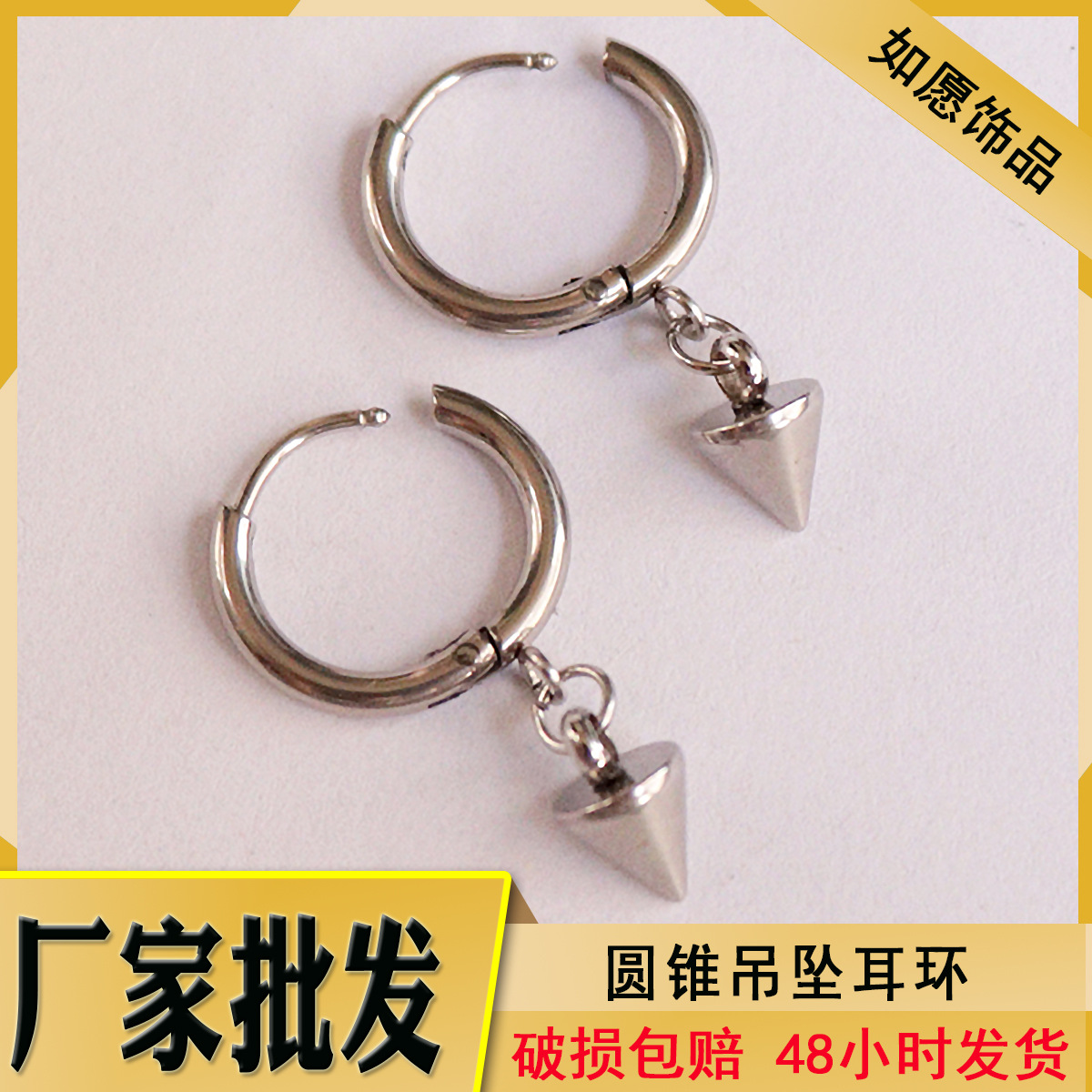 Cross-border Premium Stainless Steel Cone Pendant Earrings Simple Retro Small Pointed Men's and Women's Ear Buckle DIY Earrings